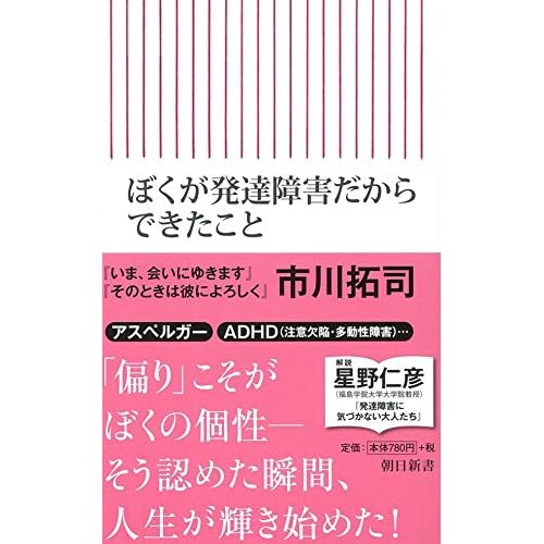 「発達障害は、つまるところ適応障害です。これは作家的想像なのですが、僕らは農耕がはじまる以前の人間の原型みたいなもので、もともとはみんなこうだったんです。たとえば僕は、直感だけは人一倍あります。データベース能力はニワトリ並みで、買い物リストを三つ以上覚えられない。四つめが出てきた瞬間、一つめを忘れちゃう。その一方で、世の中の森羅万象を目にしたときにそれをパターン化する能力は突出しています。それは古くは、風の音とにおいをキャッチして、『あ、この方角に虎がいるな。逃げなきゃ』と判断するときに使われていた直感力なんです。もっというと、僕は自分のことを人間以前のサル、しかもテナガザルではないかと思っています。だからこんなにも自然が好きだし、家族を大切にするし、争いを好まないんです」『ぼくが発達障害だからできたこと』市川拓司インタビュー